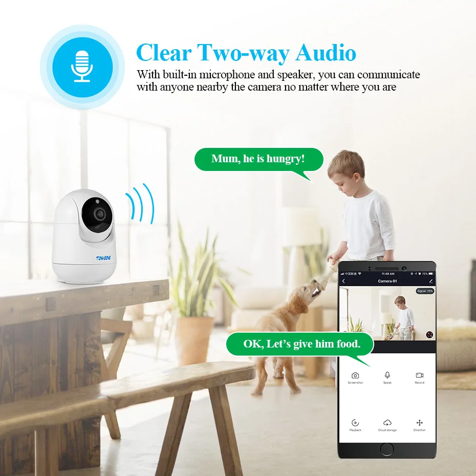 Built-in microfone e alto-falante, não importa o quão longe você está, você pode facilmente falar com o bebê, criança, família remotamente através da câmera