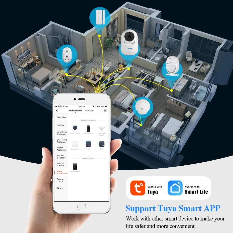 Com livre tuya app você vai saber que está acontecendo mesmo quando você não está por perto, também você pode controle remoto 4 câmera ip ao mesmo tempo.